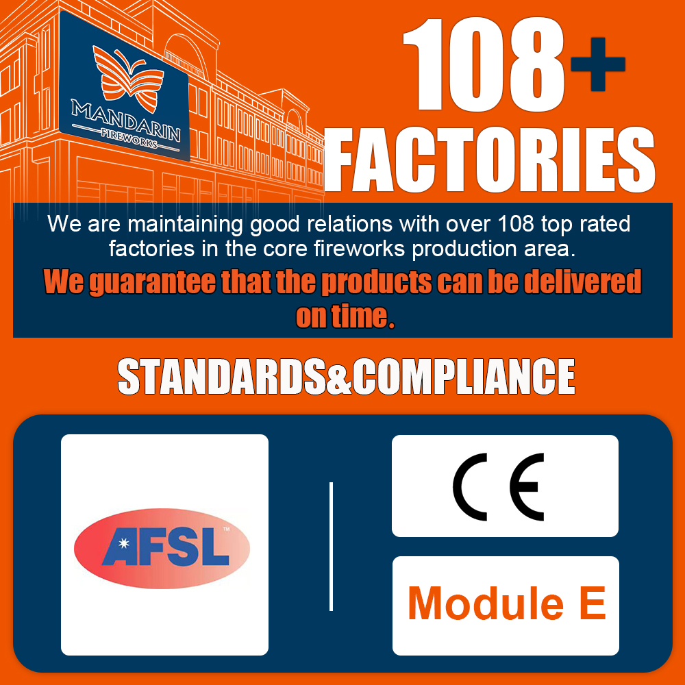 최소 주문은 1개 당 100박스 또는 혼합 주문을 위한 20피트 컨테이너입니다. 안전 규정 때문에 불꽃놀이는 다른 일반 제품과 함께 배송할 수 없습니다.